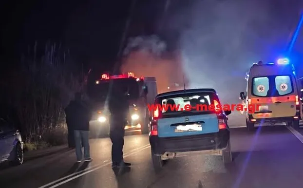 Κινητοποίηση των αρχών τη νύχτα του Σαββάτου προς Κυριακή στην επαρχιακή οδό Τυμπακίου – Μοιρών, στον Δήμο Φαιστού, όταν Ι.Χ. επιβατικό αυτοκίνητο εξετράπη της πορείας του και λίγο αργότερα τυλίχθηκε στις φλόγες.