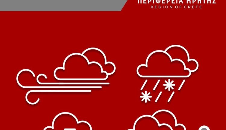 Η Πολιτική Προστασία Περιφέρειας Κρήτης, μετά την επικαιροποίηση του ΕΚΤΑΚΤΟΥ ΔΕΛΤΙΟΥ ΕΠΙΚΙΝΔΥΝΩΝ ΚΑΙΡΙΚΩΝ ΦΑΙΝΟΜΕΝΩΝ της ΕΜΥ/ΕΜΚ (ERMINIO) που θα επηρεάσει την Κρήτη από σήμερα Τετάρτη1 Απριλίου μέχρι αύριο Πέμπτη 2 Απριλίου 2026με κύρια χαρακτηριστικά τις ισχυρές βροχές και καταιγίδες με ενδεχόμενες χαλαζοπτώσεις και τους πολύ ισχυρούς άνεμους, ενημερώνει ότι όλες οι Υπηρεσίες του Μηχανισμού Πολιτικής Προστασίας έχουν τεθεί σε κατάσταση αυξημένης ετοιμότητας σε επίπεδο Πορτοκαλί Προειδοποίησης για σήμερα Τετάρτη και σε επίπεδο Κόκκινης Προειδοποίησης για αύριο Πέμπτη.