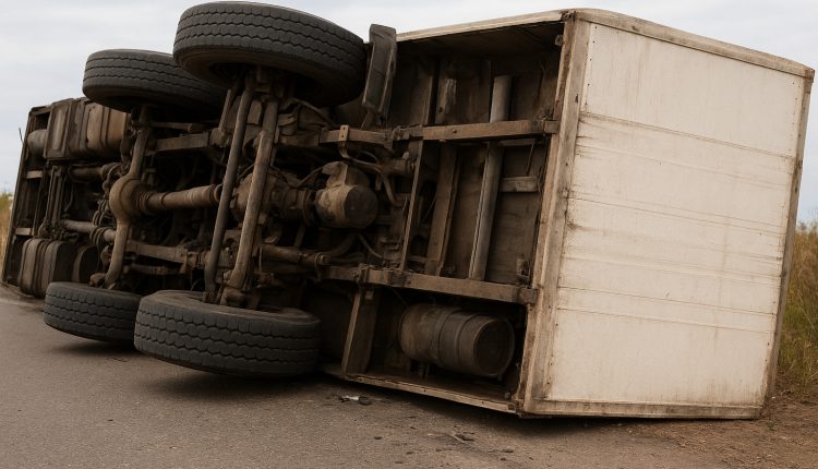 Ανατροπή νταλίκας είχαμε, το πρωί της Μ. Δευτέρας, στον Βόρειο Οδικό Άξονα Κρήτης, στο ύψος της Αγίας Πελαγίας, κάτω από αδιευκρίνιστες συνθήκες.