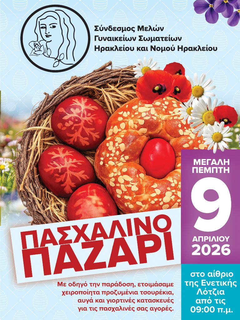 Η καρδιά του Ηρακλείου χτυπά φέτος τη Μεγάλη Πέμπτη, 9 Απριλίου 2026, στο Αίθριο της Λότζια. Ο «Σύνδεσμος Μελών Γυναικείων Σωματείων Ηρακλείου και Ν. Ηρακλείου» δίνει το καθιερωμένο του ραντεβού με τους πολίτες, μετατρέποντας το κέντρο της πόλης σε έναν φωτεινό πόλο προσφοράς και δημιουργίας.
