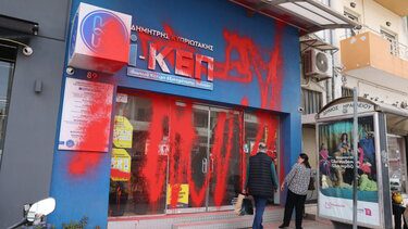Επιτέθηκαν στο ιδιωτικό ΚΕΠ με μπογιά και συνθήματα μέλη του Ρουβίκωνα