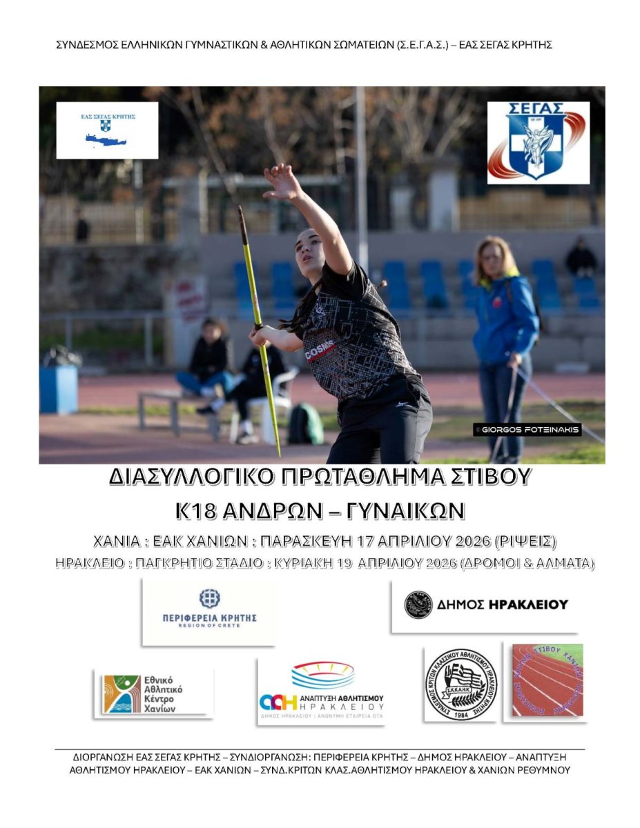 Με μεγάλη συμμετοχή και ορισμένες σπουδαίες επιδόσεις έγιναν την Παρασκευή 17/4 στα Χανιά (ΕΑΚ – Αγωνίσματα Ρίψεων) και την Κυριακή (στο Ηράκλειο, ΠΑγκρήτιο Στάδιο Αγωνίσματα Δρόμων και Αλμάτων) οι Διασυλλογικοί Αγώνες Κ18 για τα σωματεία της ΕΑΣ ΣΕΓΑΣ Κρήτης