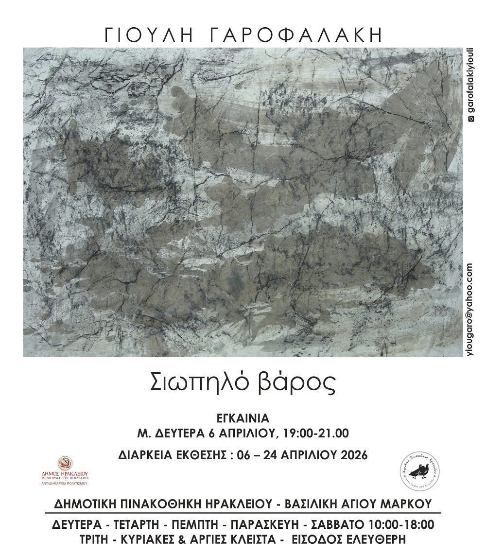 Διαβάστε περισσότερα εδώ: https://heraklionartgallery.gr/exhibitions/yiouli- garofalaki-siopilo-varos/