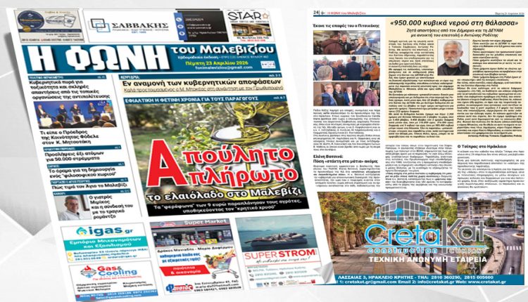 Διαβάστε στη “Φωνή του Μαλεβιζίου” ✔ Σήμερα στα περίπτερα!