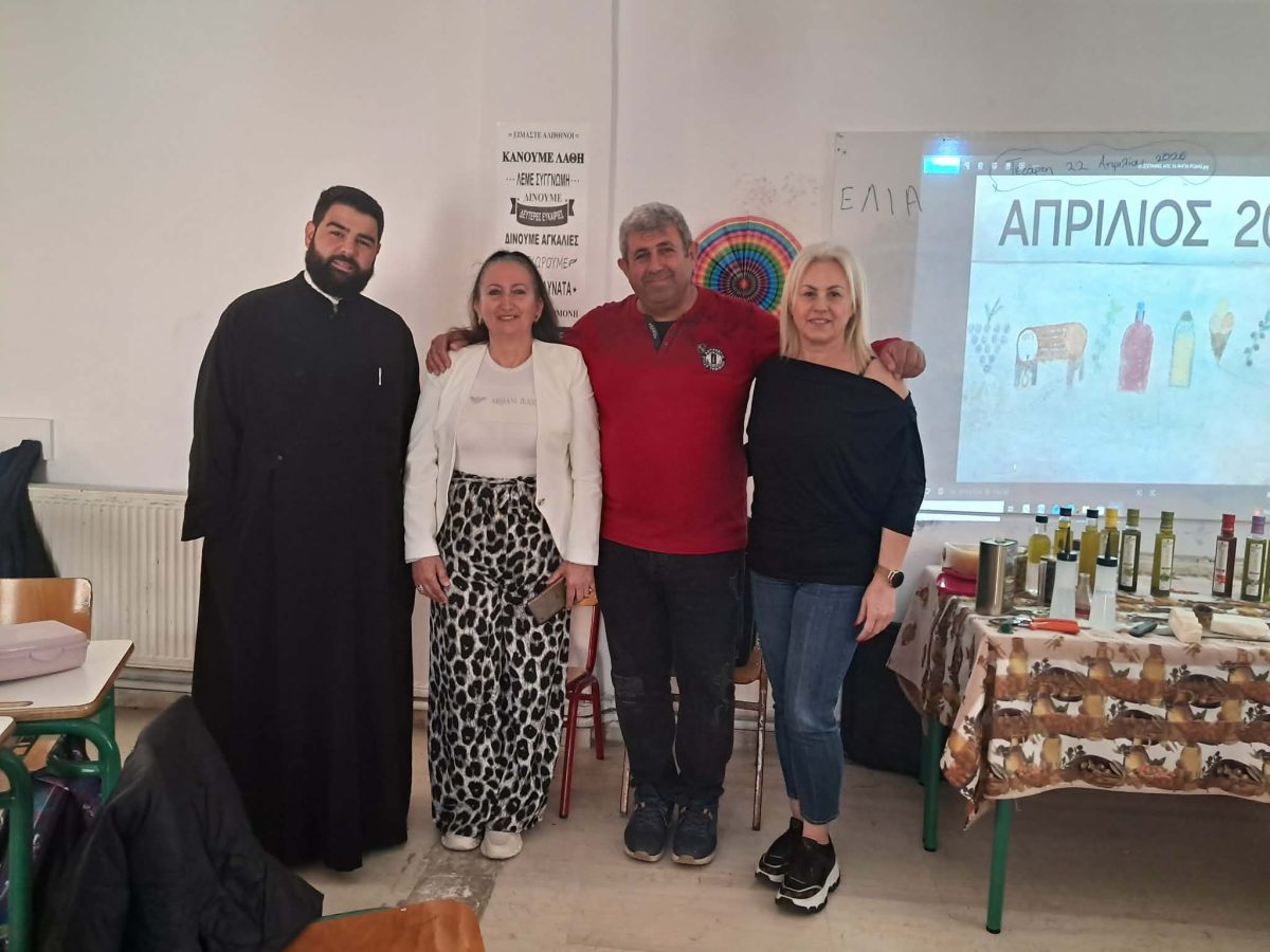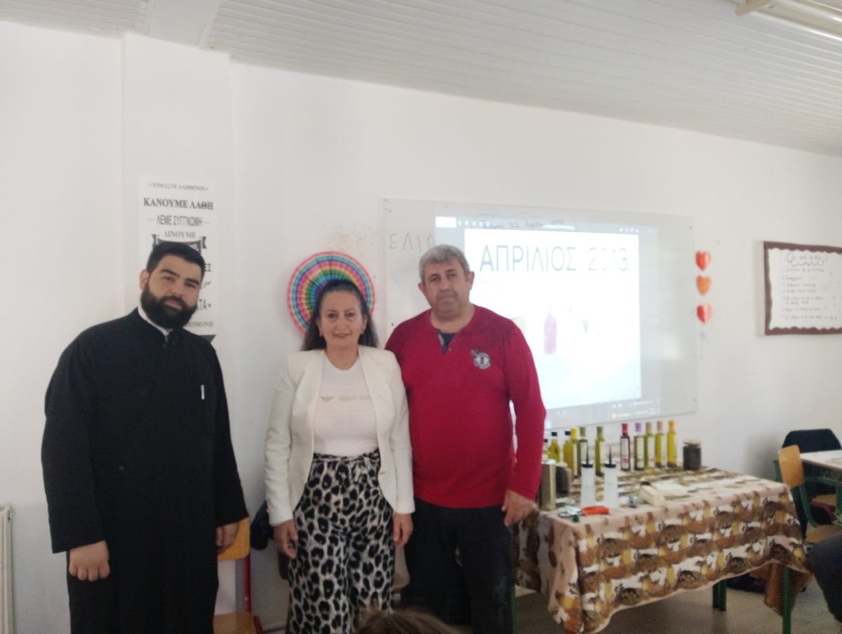 Η παρουσίαση πραγματοποιήθηκε με την πρωτοβουλία της διευθύντριας του σχολείου κας Συραγούς Χορταριά, της καθηγήτριας γαλλικών Ελπίδας Κοντοσιώζιου, υπεύθυνης περιβαλλοντικών προγραμμάτων και του ομιλητή κ. Γιώργου Μπλεμένου , παραγωγού του ελαιολάδου Ελαιώνας Μάξιμος της Ροδιάς Μαλεβιζίου Ηρακλείου Κρήτης.