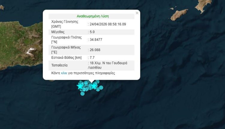 Κρήτη: Νέα σεισμική δόνηση μεγέθους 5 βαθμών της κλίμακας ρίχτερ