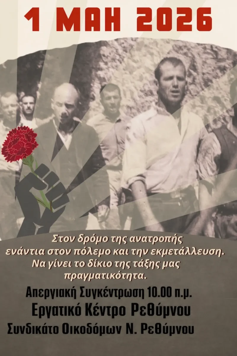 Την 1η Μάη του 2026 πιάνουμε το κόκκινο νήμα που συνδέει τους αγώνες της τάξης μας για “έναν κόσμο στο μπόι των ονείρων και των ανθρώπων”. Βαδίζουμε στον δρόμο της ανατροπής που χάραξαν οι ήρωες και πρωτοπόροι της ταξικής πάλης, από τους εργάτες του Σικάγο του 1886 μέχρι τους 200 κομμουνιστές που εκτελέστηκαν στην Καισαριανή την Πρωτομαγιά του 1944.