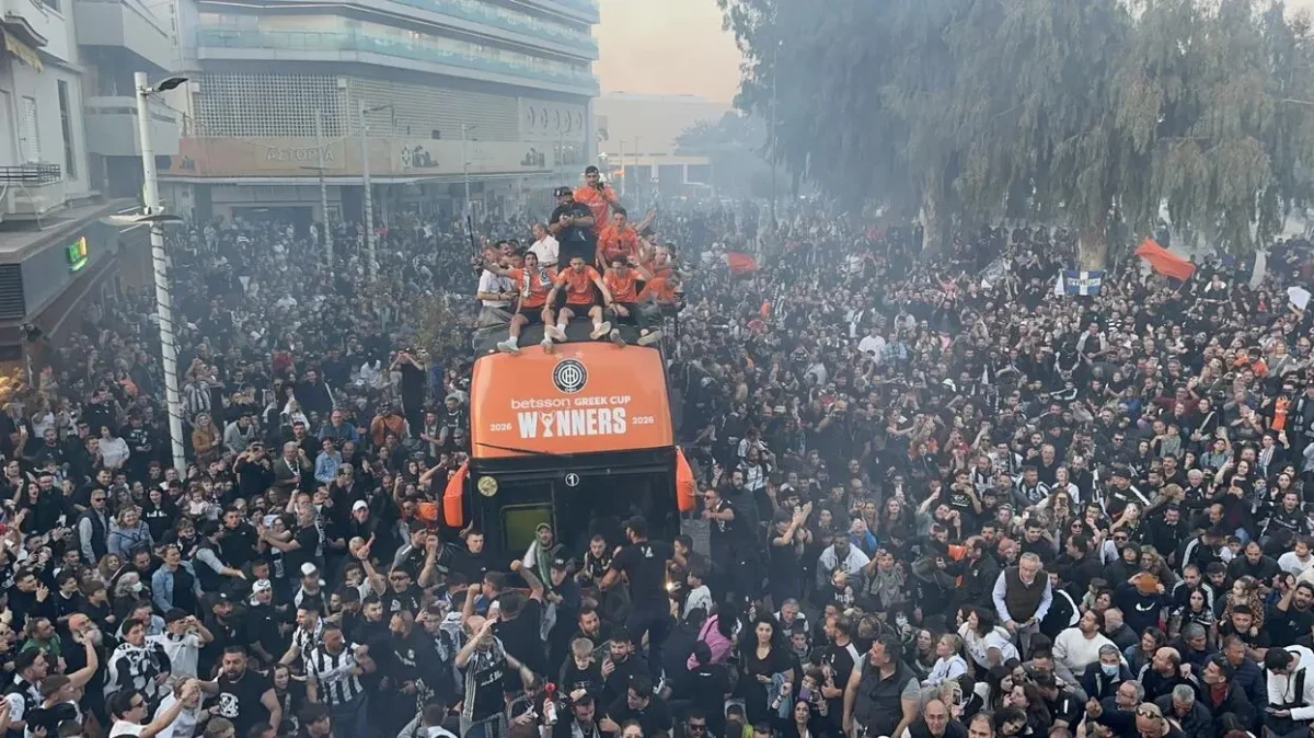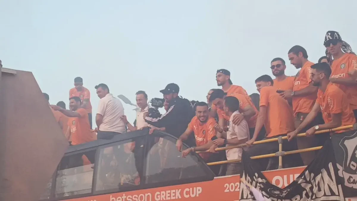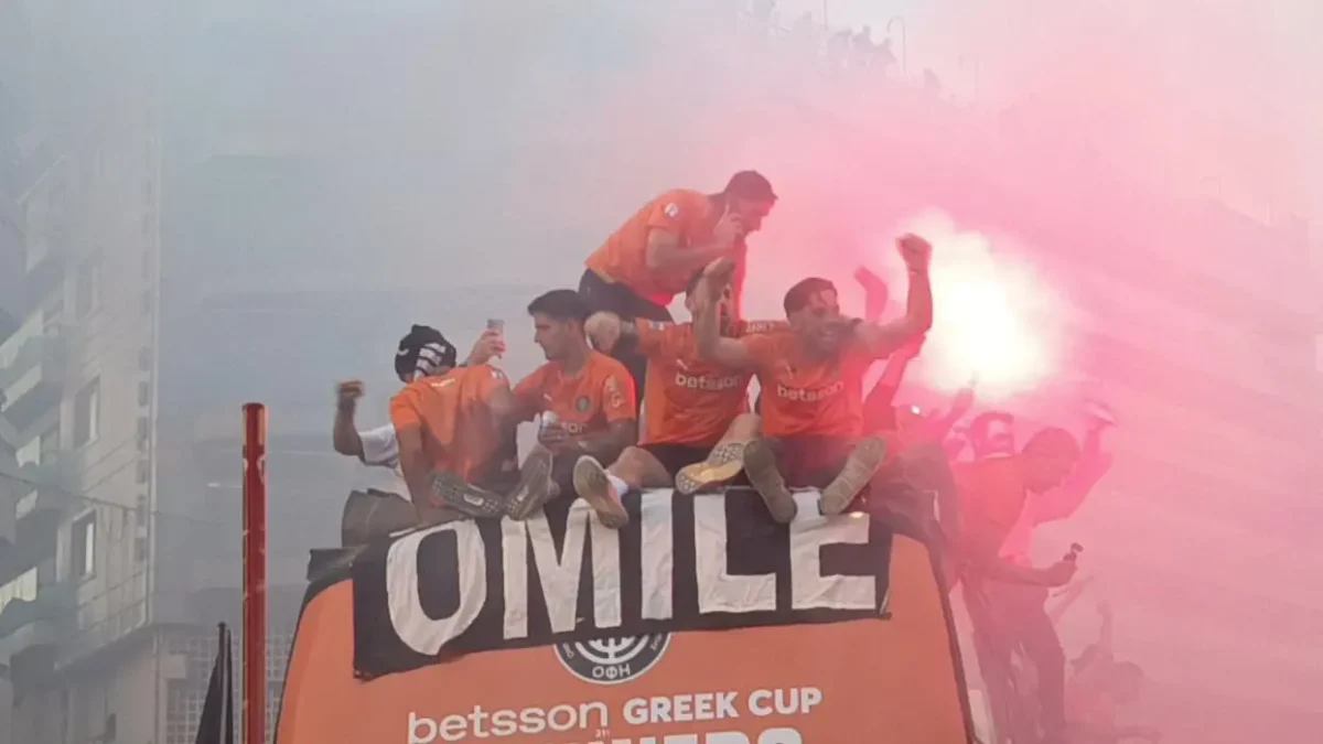 Πάνω από 20.000 φίλοι του κυπελλούχου ΟΦΗ ξεχύθηκαν στους δρόμους για να αποθεώσουν τους νικητές και τα στιγμιότυπα ήταν συγκλονιστικά.